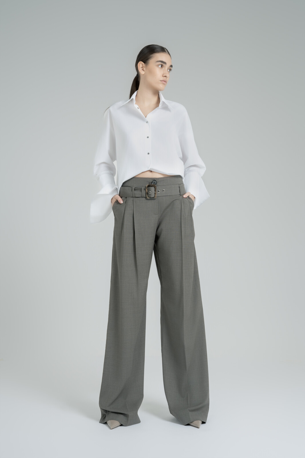 Volumul cade liber, fără să ceară atenție. Talie medie, fix cât trebuie ca să păstreze proporția relaxată. Masculin în construcție, dar purtat fără efort.