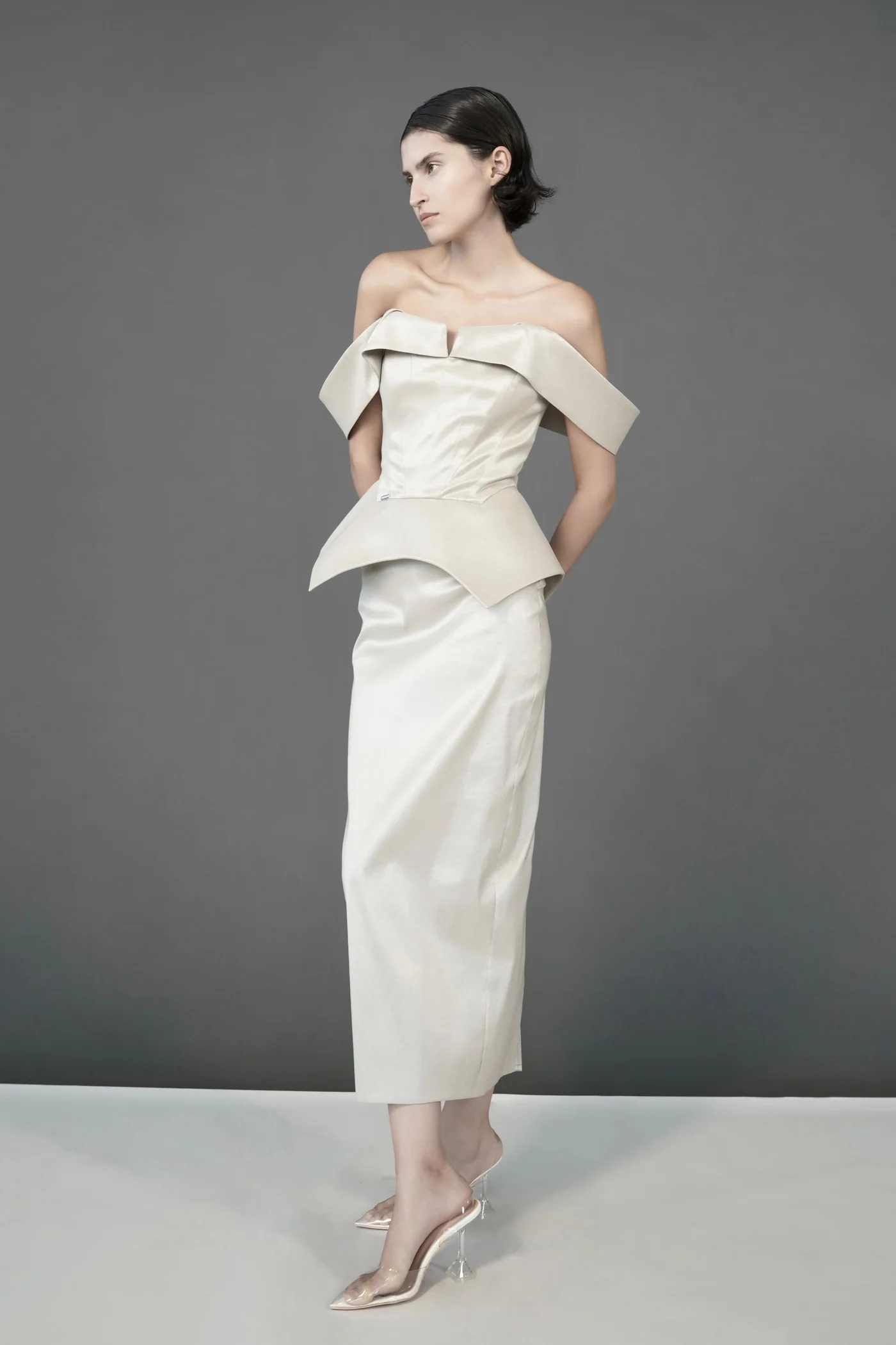 Rochie midi tip creion confecționată din tafta elastică, care oferă o croială elegantă și mulată. Are un fermoar discret la spate pentru închidere și un design minimalist, ideal pentru ținute sofisticate sau de birou. Alege Bardash – calitate și un stil minimalist în orice moment.